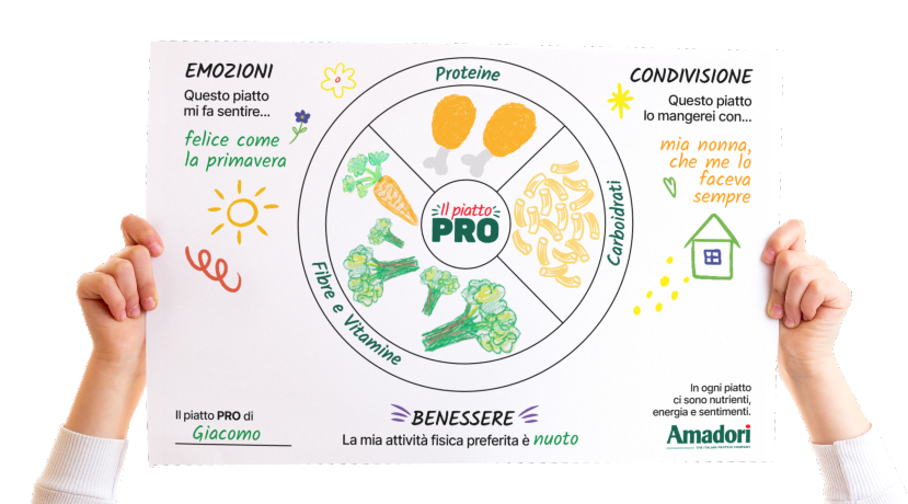 Dopo aver svolto il percorso in classe, le bambine e i bambini hanno rappresentato il loro piatto PRO con un disegno che esprime il valore attribuito alla corretta nutrizione.